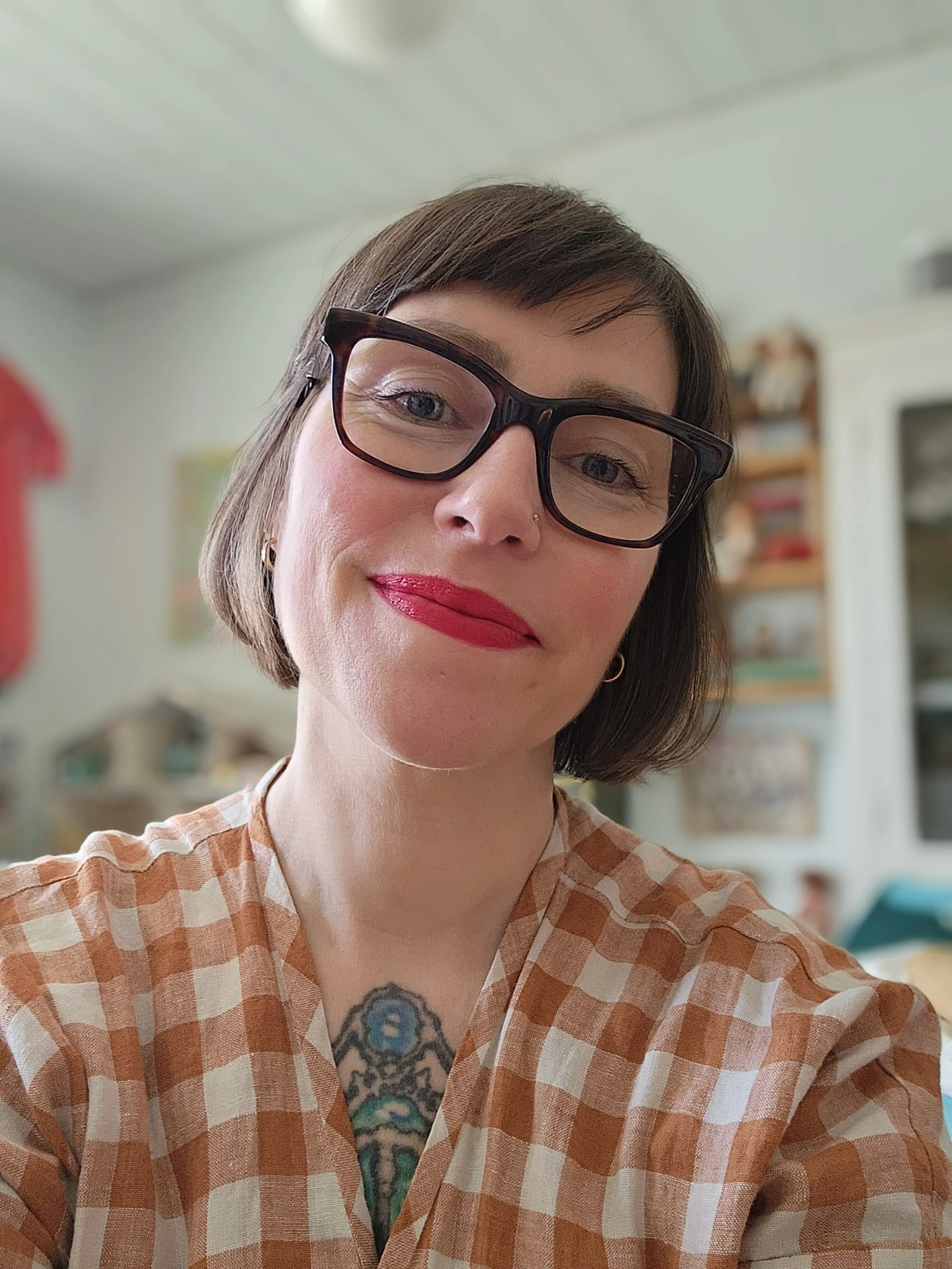 Melanie lives and works in Winnipeg, Canada, where she collects odd buttons, beautiful fabrics, and stories from flea markets & family attics. When she’s not in the studio, she’s likely sketching ideas over coffee, wondering antique shops, or paging through her vintage book collection.